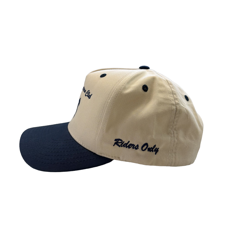 Bold original embroidery and stylish "Riders Only" side embroidery script
